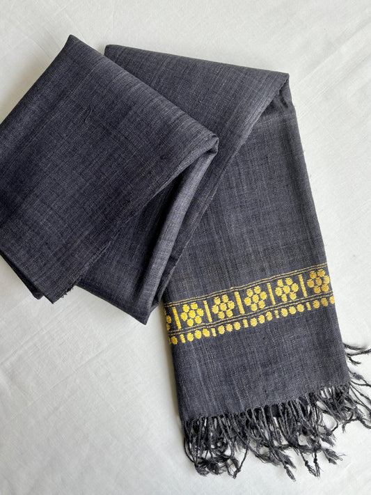 Grey Ahimsa Silk Stole with Yellow border | Natural Dyes