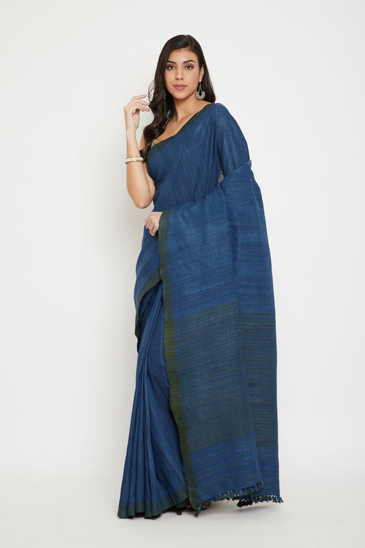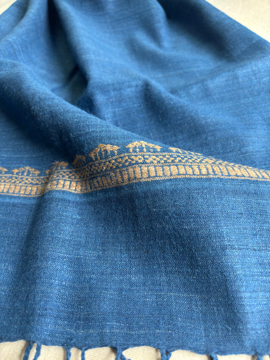 Blue Ahimsa Silk Scarf with Temple Border | Indigo Dyes