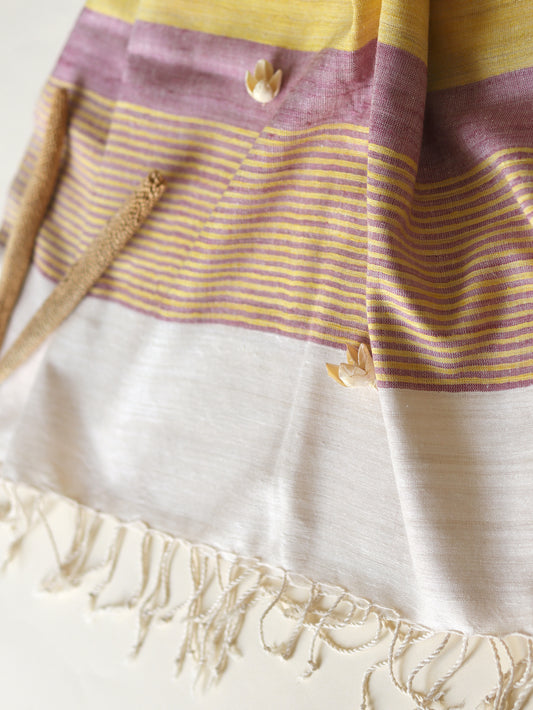 Crafted from a harmonious blend of cruelty-free, Ahimsa silk yarn and cotton fibres, 'Koli'- meaning Budding Flower in Assamese- pays homage to Northeast Indian heritage, elegantly merging traditional elements into modern wardrobes.