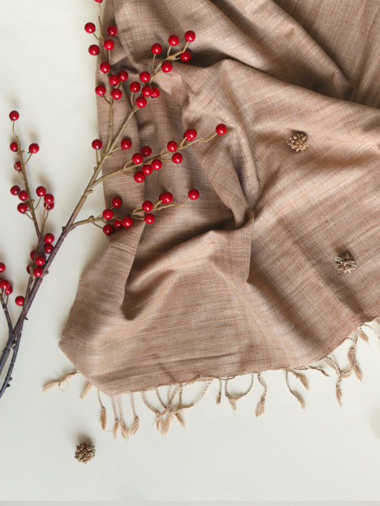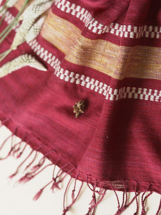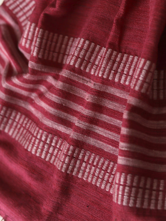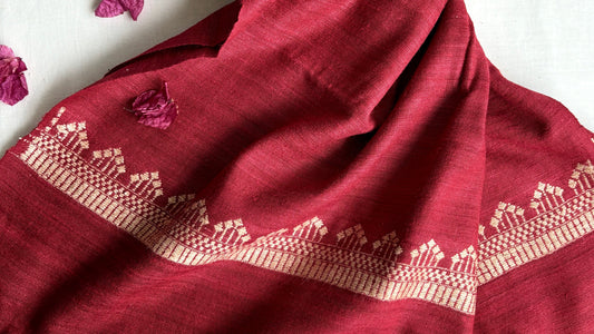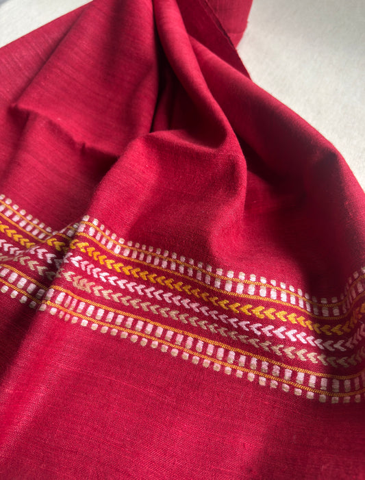 وشاح حرير Ahimsa باللون الأحمر مع حافة باللون البيج | صبغات طبيعية