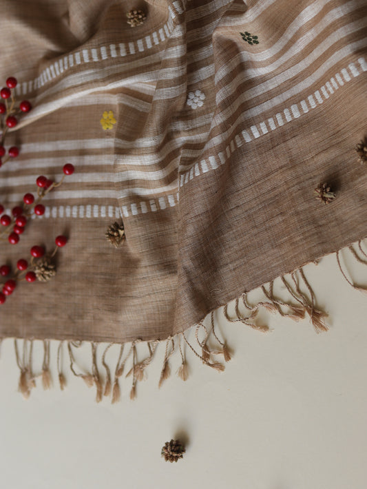 وشاح حرير أهيمسا باللون البني مع زخارف هندسية وزهرية