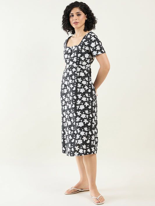 فستان ميدي بقصة A مع جيب جانبي للنساء | أحادي اللون