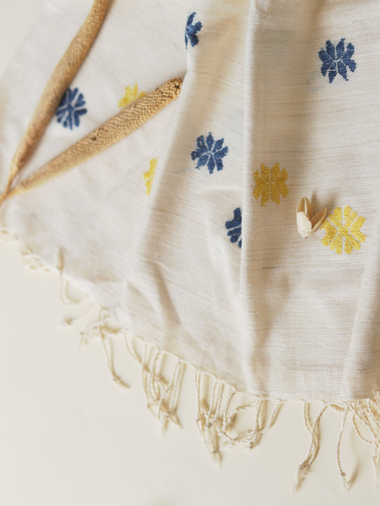 وشاح حرير أهيمسا بزخارف زرقاء و صفراء
