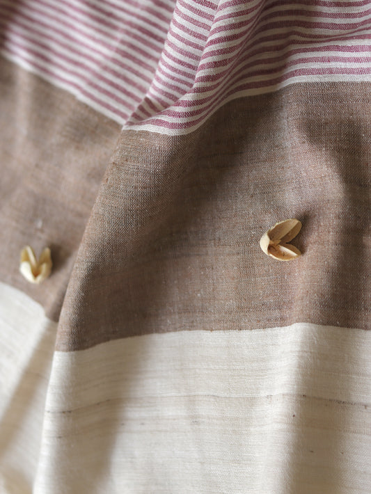 وشاح حرير أهيمسا بخطوط رمادية وبنية ووردية