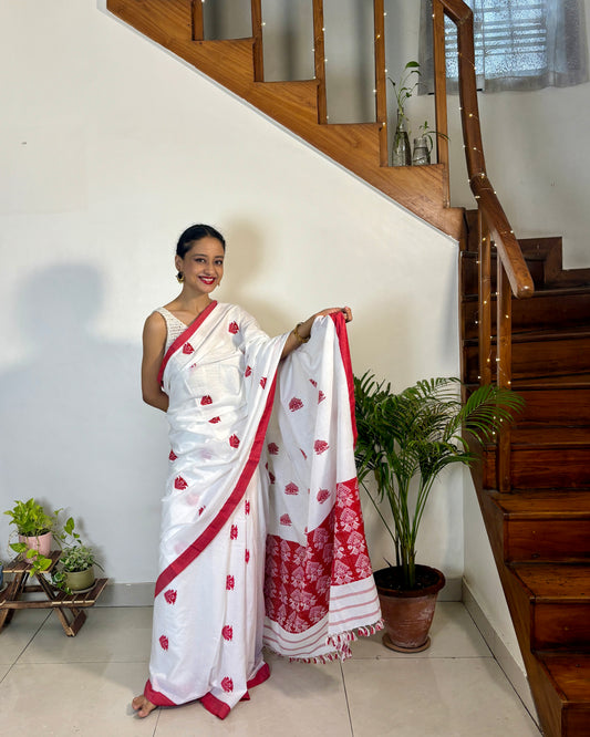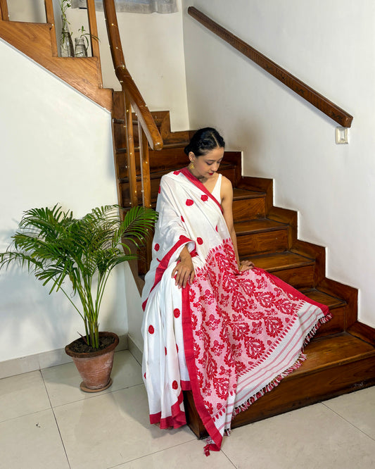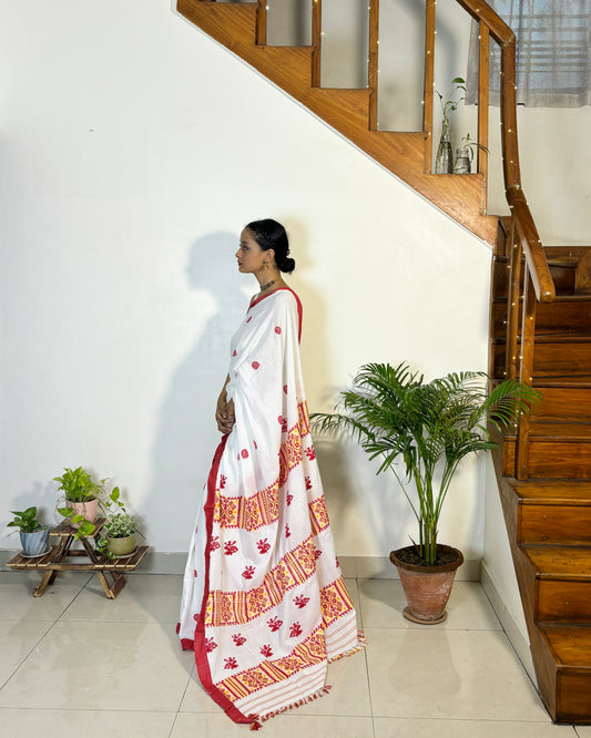 Cotton Saree with Traditional 'Bisoni' Motif