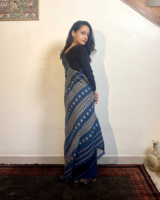 Cotton Silk Sari with Intricate Heavy Pallu | Deep Blue
