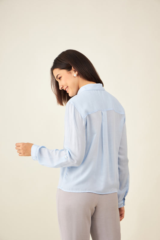 أُوكَازيُونقميص بأكمام كاملة باللون الأزرق البودري