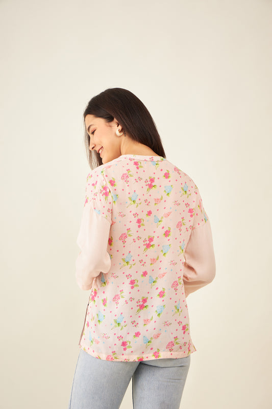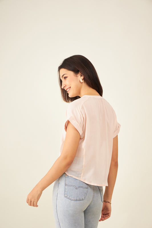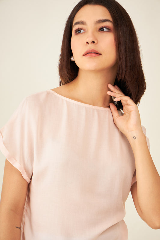 بلوزة باللون الوردي الفاتح مع أجزاء جانبية شفافة للنساء