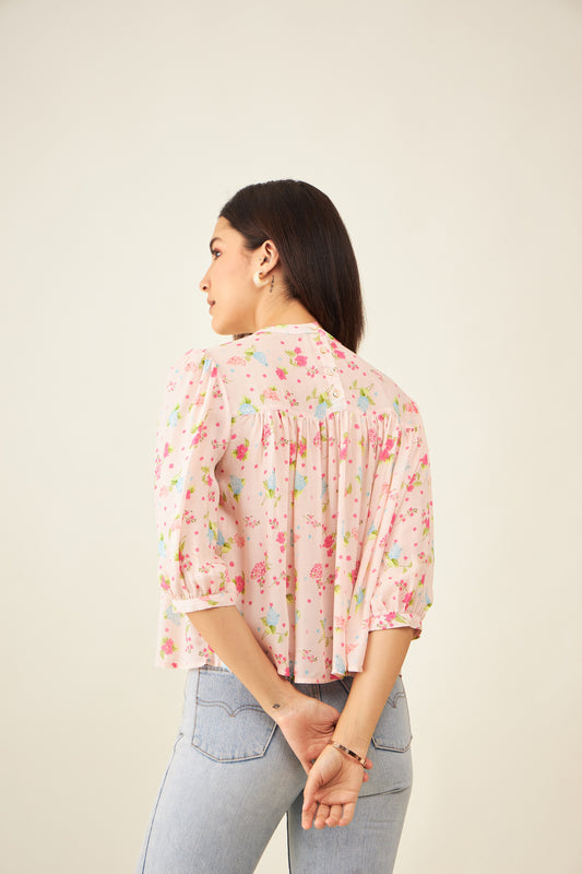 أُوكَازيُونبلوزة بطبعة زهور بأكمام قصيرة