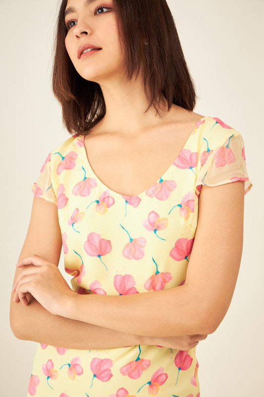 أُوكَازيُونفستان بدون أكمام بطبعة زهور مع طبقة شفافة