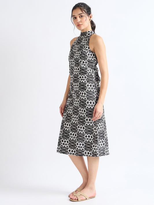 فستان بدون أكمام مع تفاصيل ربطة عنق للنساء | أحادي اللون