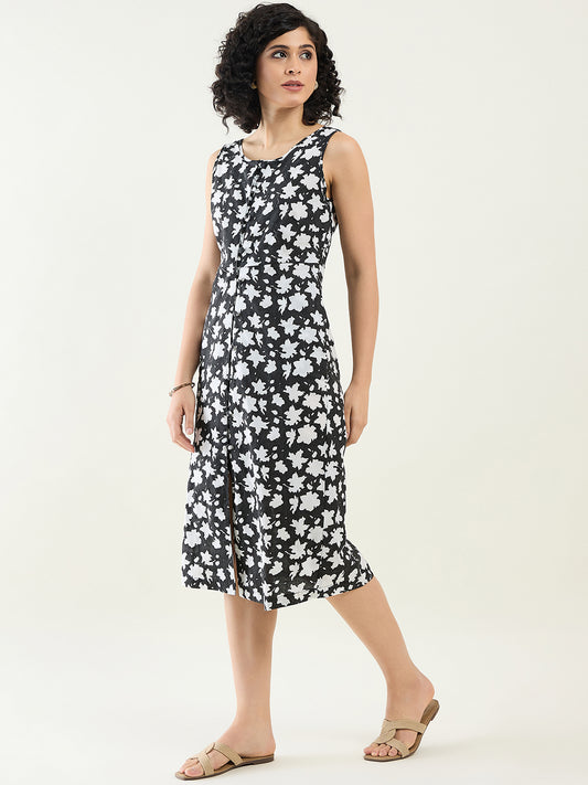 فستان نسائي ضيق مزين بالزهور | أحادي اللون