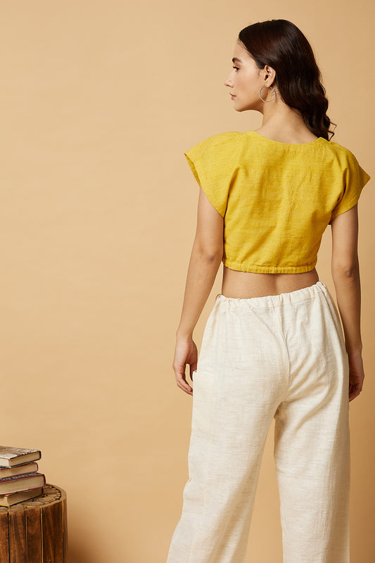 بلوزة قصيرة بأكمام على شكل كيمونو باللون الأصفر