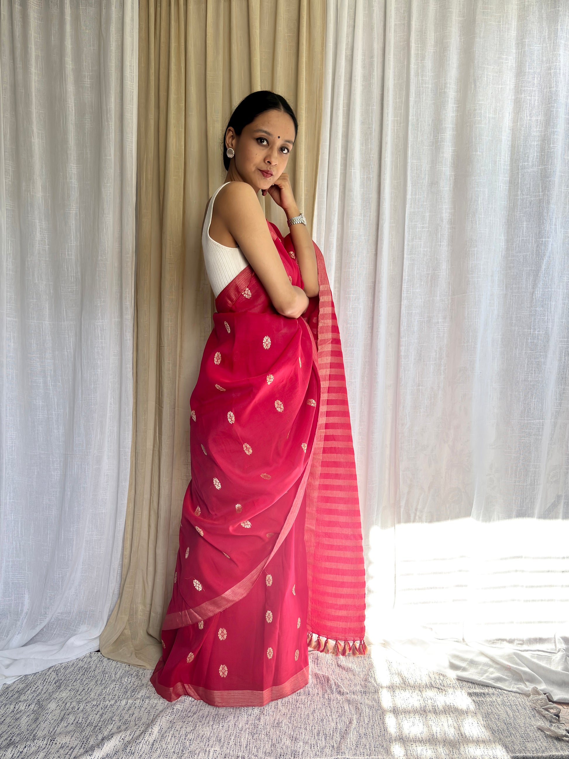 Drape yourself in elegance with this stunning red silk saree, a timeless choice for festive celebrations, weddings, and cultural events. Made from premium-quality raw silk with a cotton warp, this saree showcases an enchanting blend of vibrant red hues and floral motifs that exude grace and sophistication. Perfect for traditional or modern draping styles, it pairs beautifully with statement jewellery for a complete look. Designed for comfort and grandeur, it's a wardrobe essential for anyone who values timeless beauty.