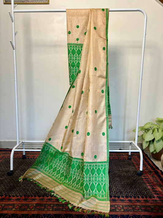 Handloom Tussar Silk Mekhela Sador | Green and Gold
