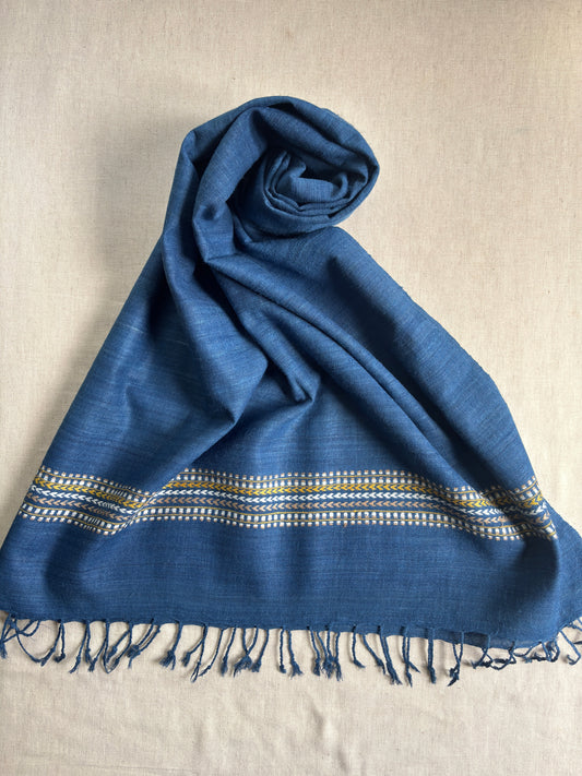 Blue Ahimsa Silk Scarf with Striped Arrow Border | Indigo Dyes